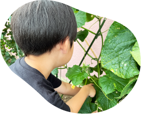 子どもたちが園の畑で育てた野菜を、収穫後に給食で味わいます。食への興味や自然への感謝の気持ちを育む貴重な体験です。